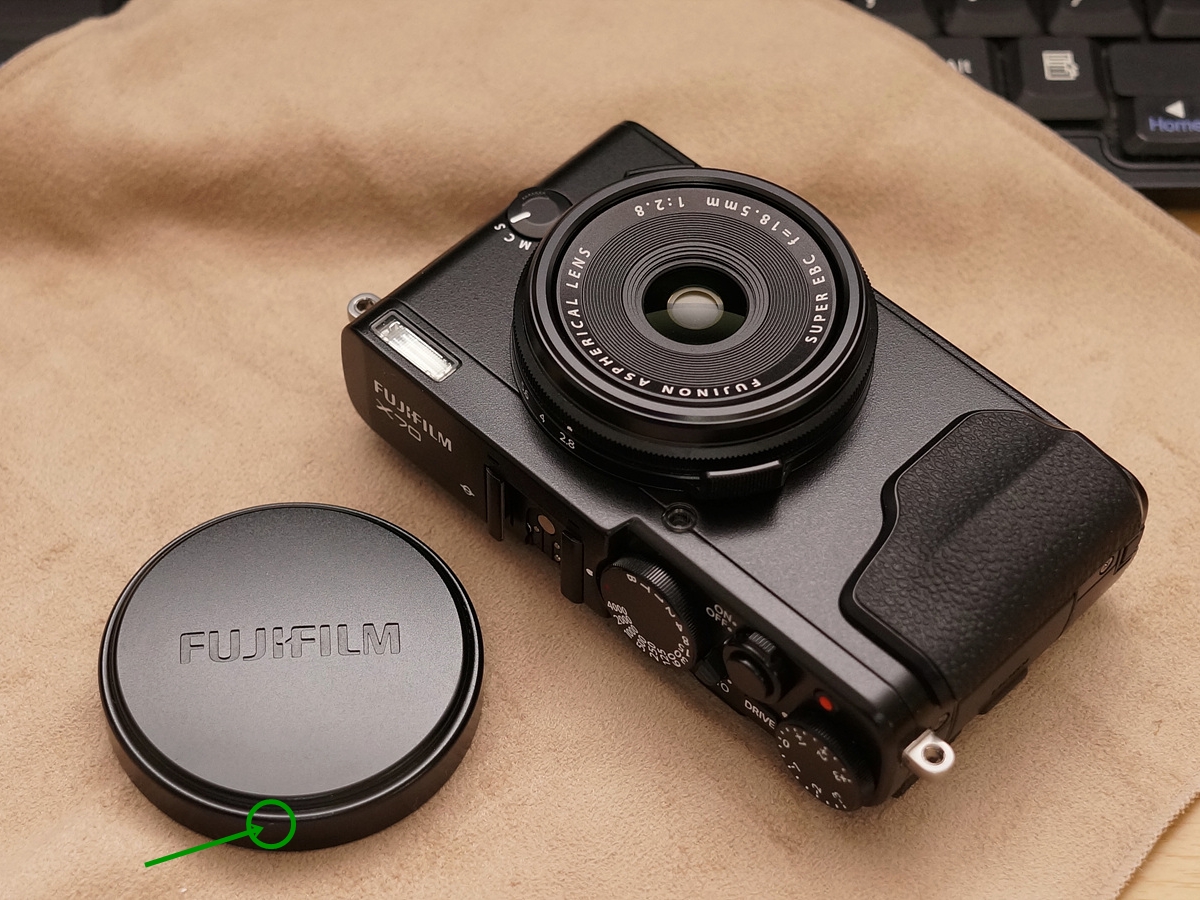 *렌즈캡에 작게 긁힌 자국 있습니다.(사진의 초록색 원 안쪽 희끗한 부분)