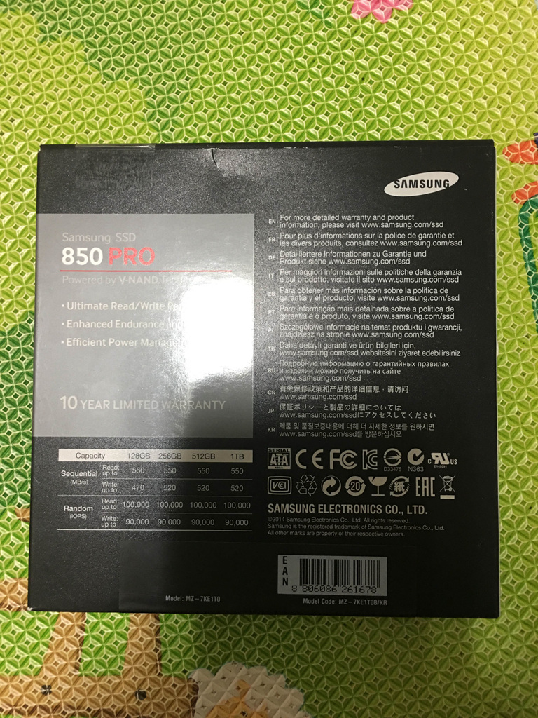 올해 3월 2일 컴퓨존에서 구매한 삼성전자 850 PRO series 1TB MZ-7KE1T0B/KR (가이드미포함)