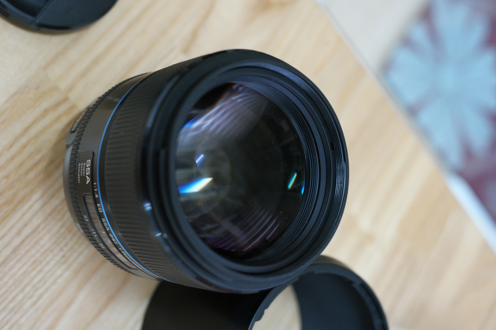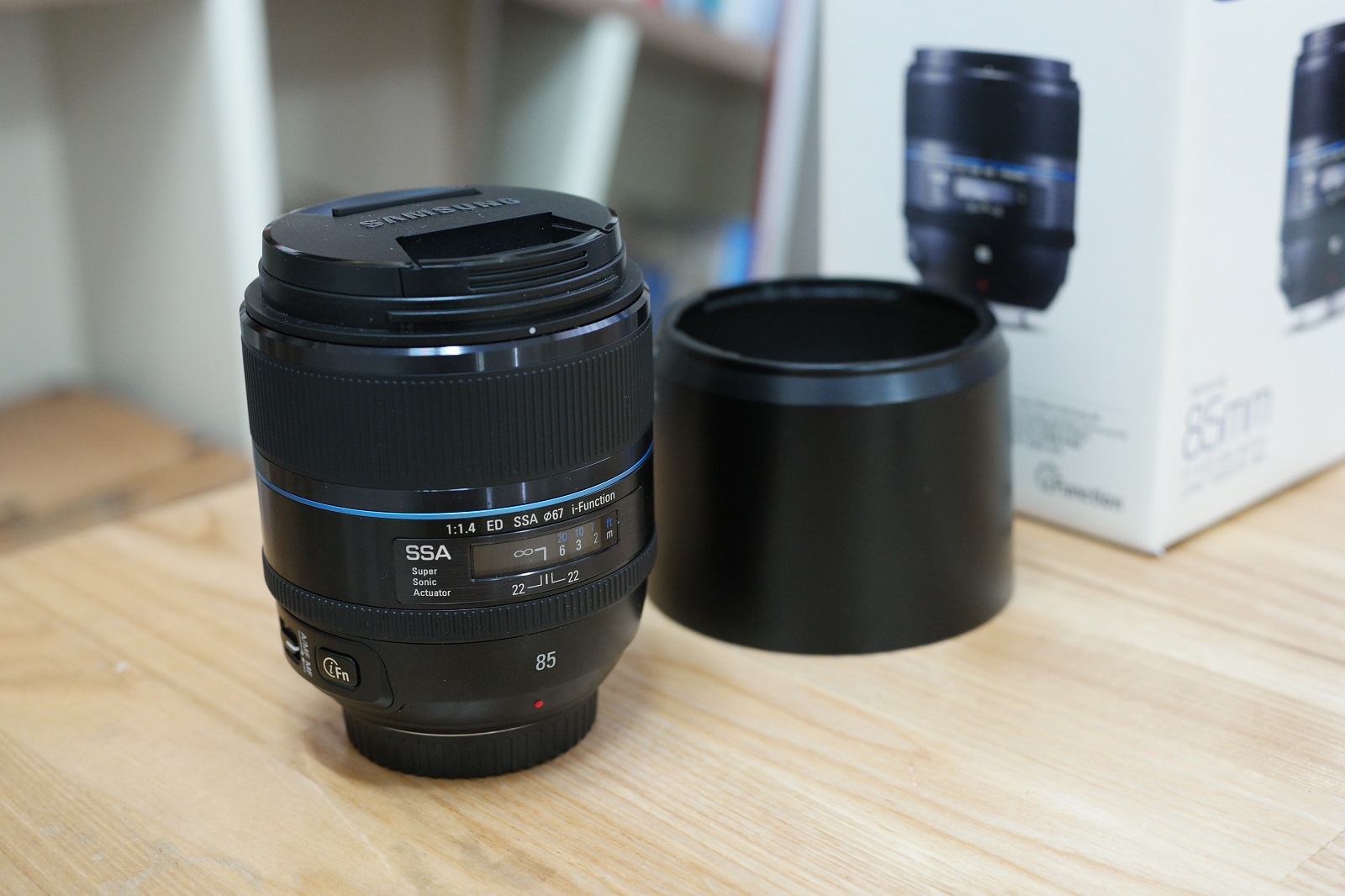 박스와 사용설명서, 후드, 렌즈 보관 파우치 모두 있습니다.