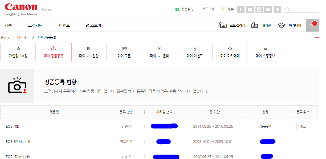 2014년 8월 구매하였으며 보증기간은 2016.8.26일 까지입니다.