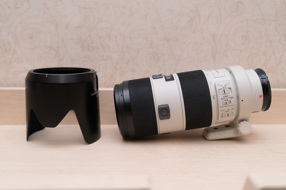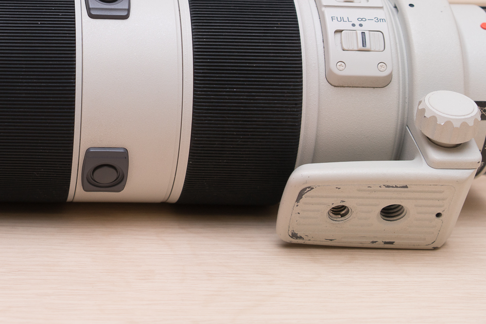 1. sony 70-200 f2.8 알파마운트 박스, 파우치 있습니다. 사용감 조금 있는 편이고 (마운트링 하단부분 칠 벗겨짐)