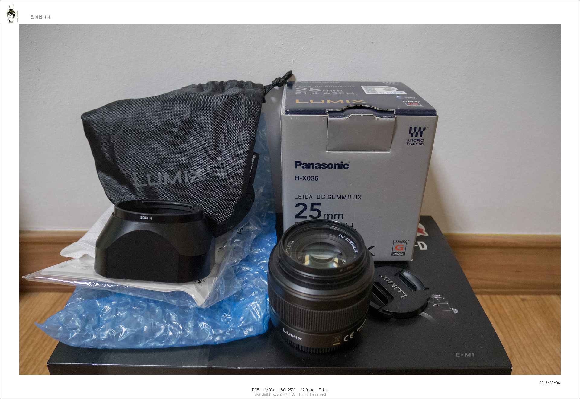 구성품 - 박스(정품스티커가 붙어있기는 한데.... 신경안쓰고 써서 모르겠습니다. ㅜㅜ ),파우치, 루믹스앞뒤캡,후드,BW필터,비니리, 렌즈....