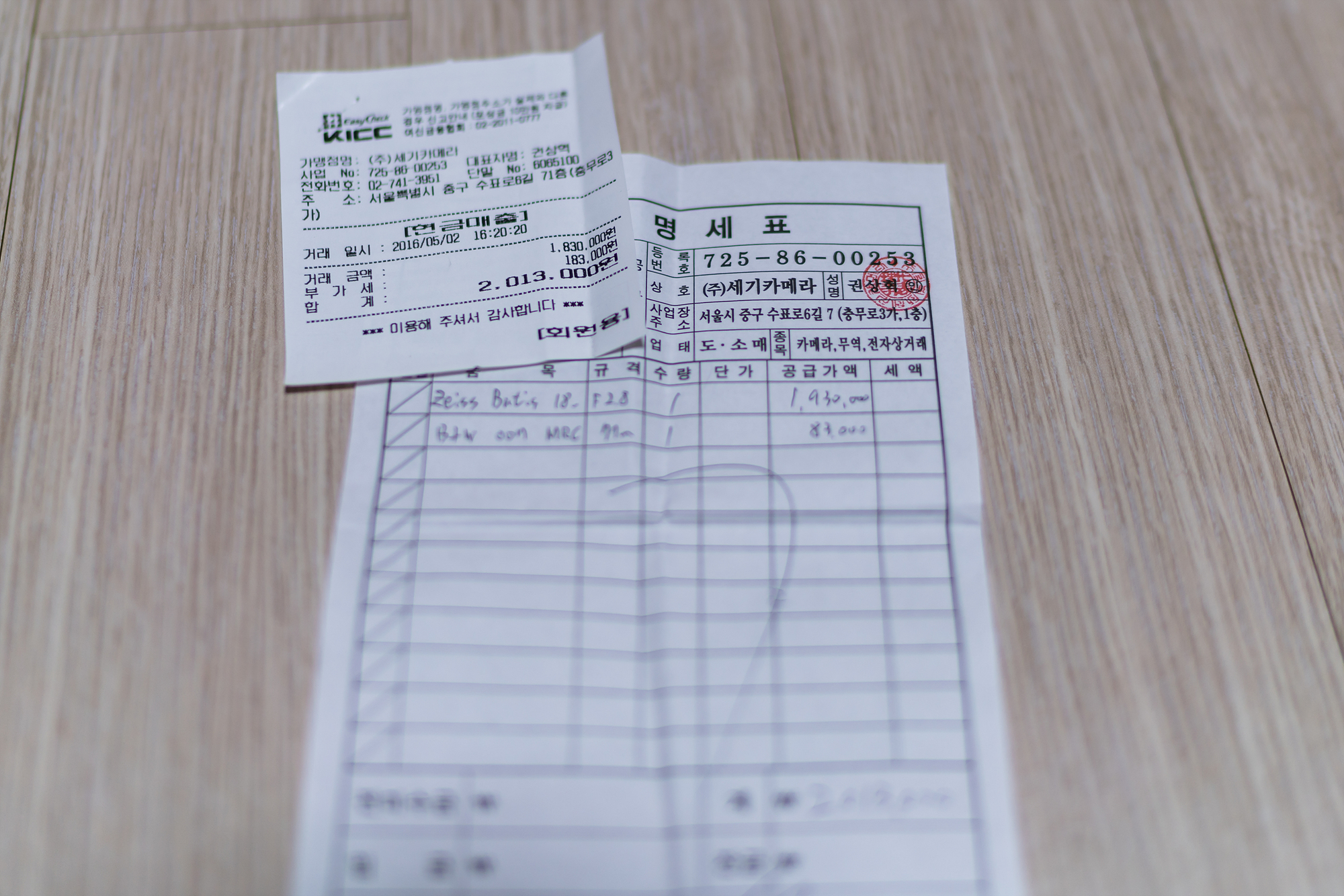 아래 영수증과 같이 이번 5월 2일 BW 필터와 같이 세기에서 예약하여 구매한 상품입니다.