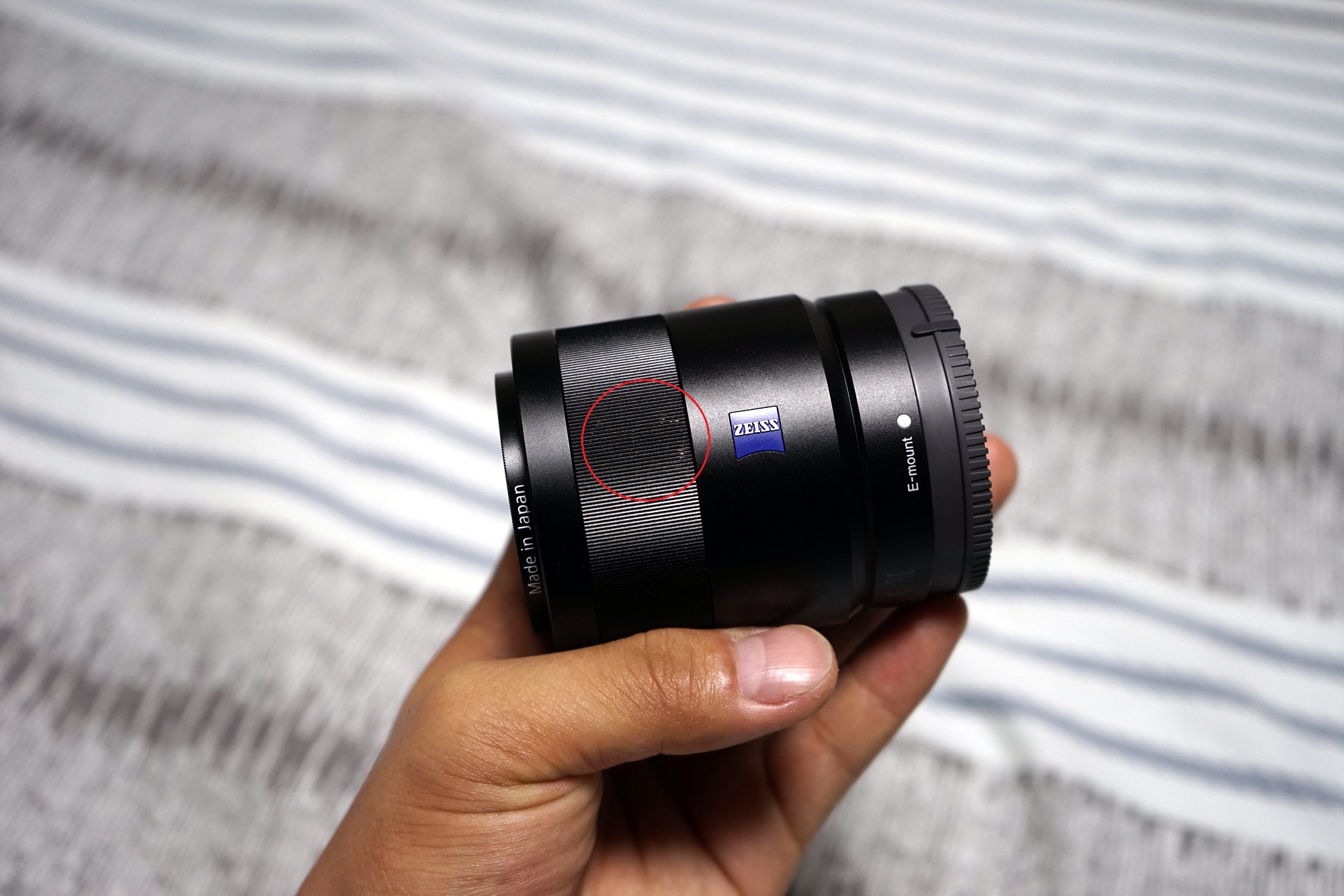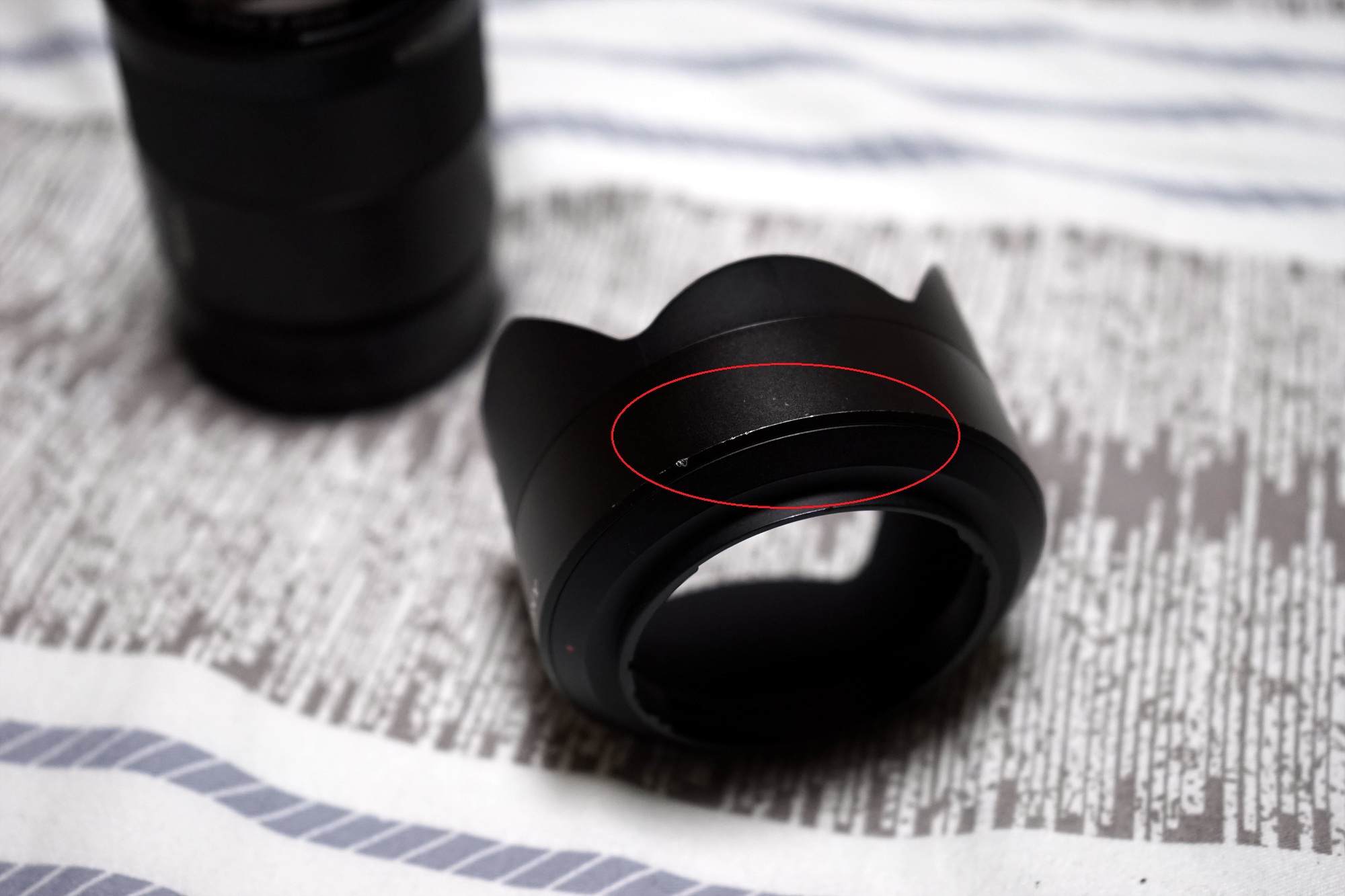 후드 테두리에 찍힌 부분과 도장이 약간 벗겨진 부분이 있습니다. 포커스링과 마운트 후면에도 도장이 약간 벗겨진 부분이 있습니다