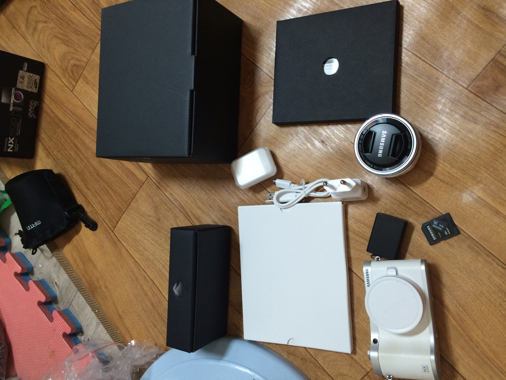 모두 검은색이며 렌즈캡은 보시는거와같이 삼성꺼가 아닙니다.