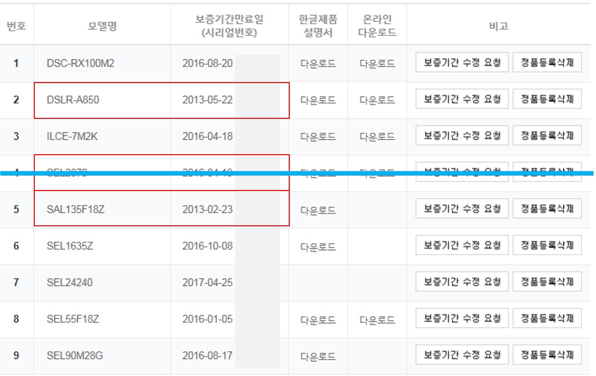 소니 정품 등록 현황 참조 하시구요, 제품 사진은 문자 주시면 퇴근 후 찍어서 보내 드리겠습니다.