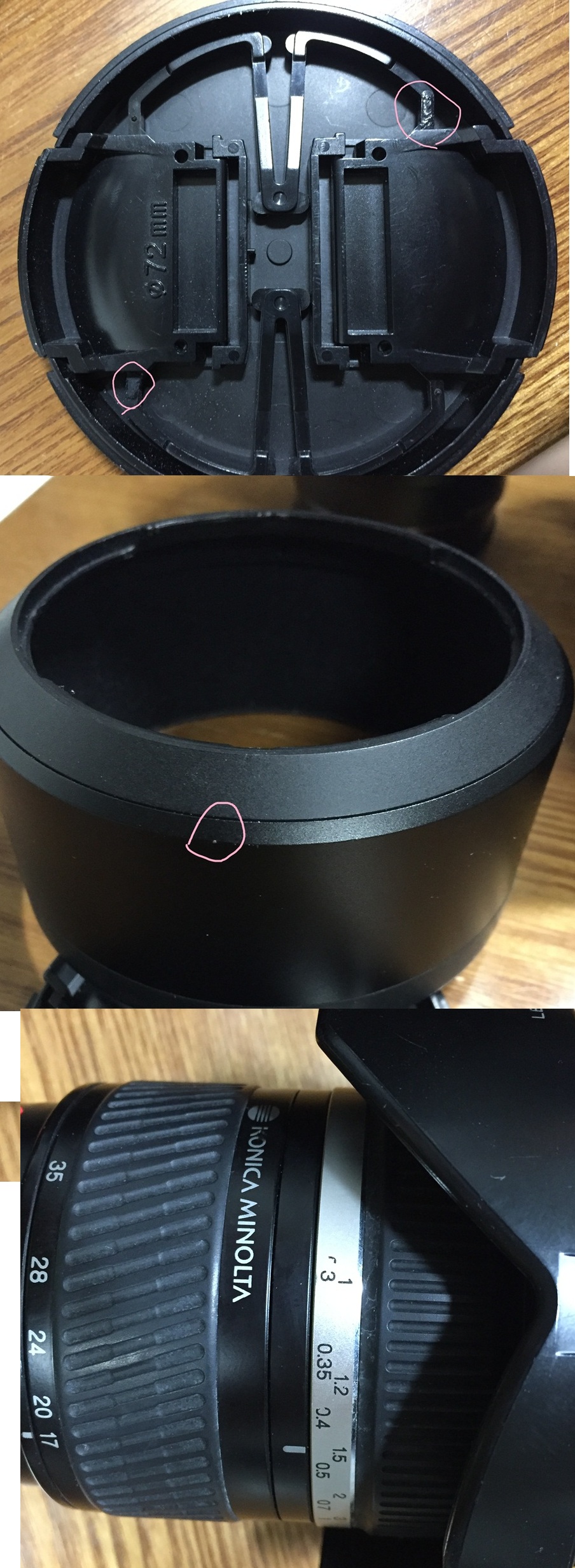 포커스링에 약간의 칠까짐이, 선 모양으로 가볍게 까졌으나 페이진 않았으며 크게 신경쓸부분은 아닙니다.