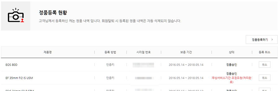 *정품등록은 캐쉬백 이벤트 종료후 해지합니다.(8월 중순 예정)