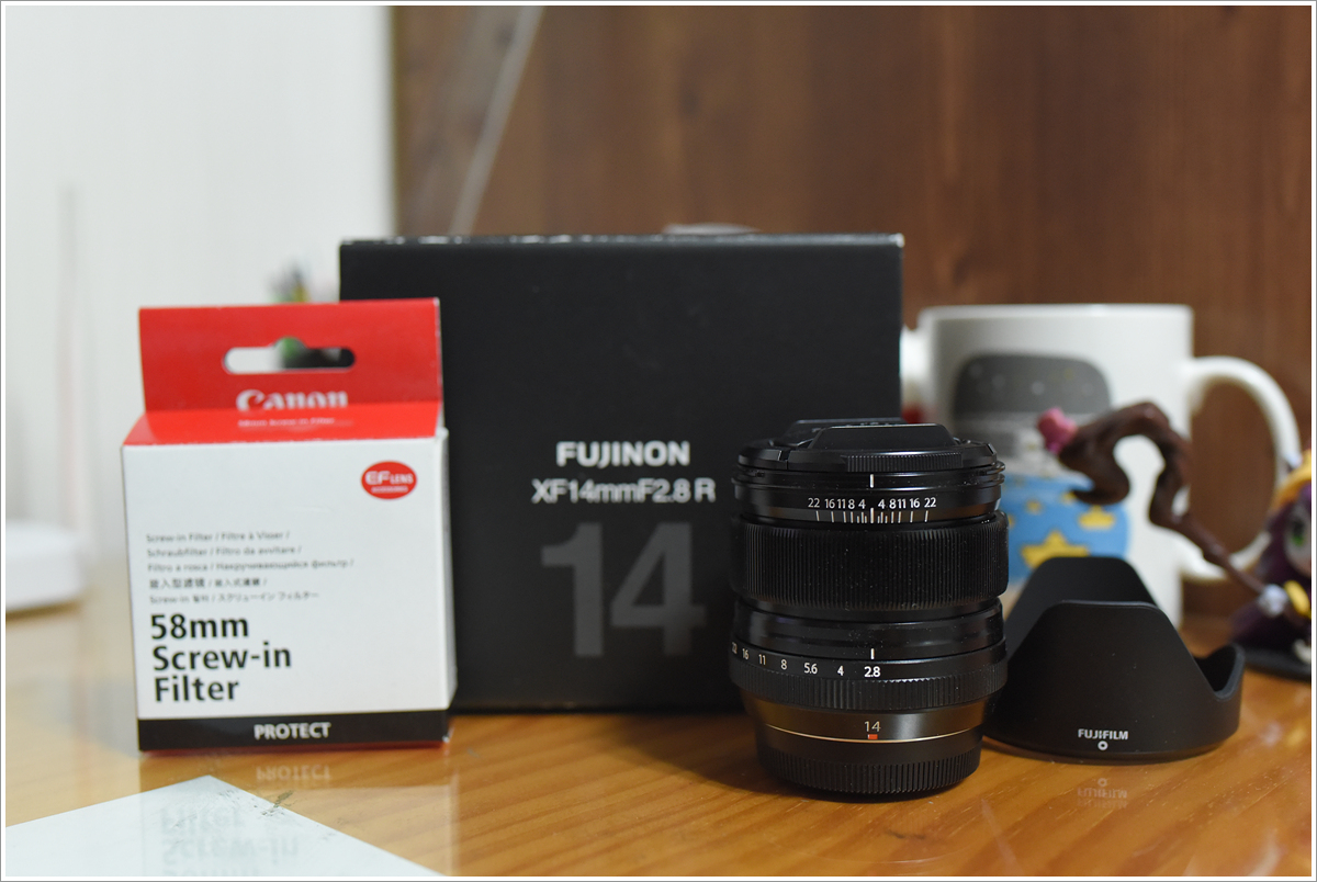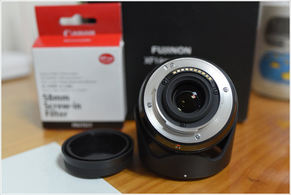 구성품은 박스, 메뉴얼, 렌즈, 후드 그리고 캐논 스크류 필터 포함입니다.