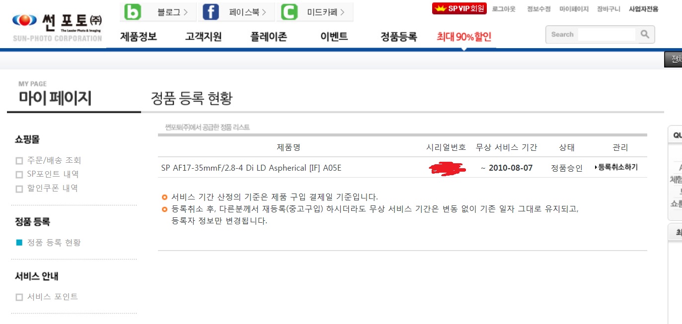 2.단종된 렌즈라 당연히 보증기간은 지났습니다.