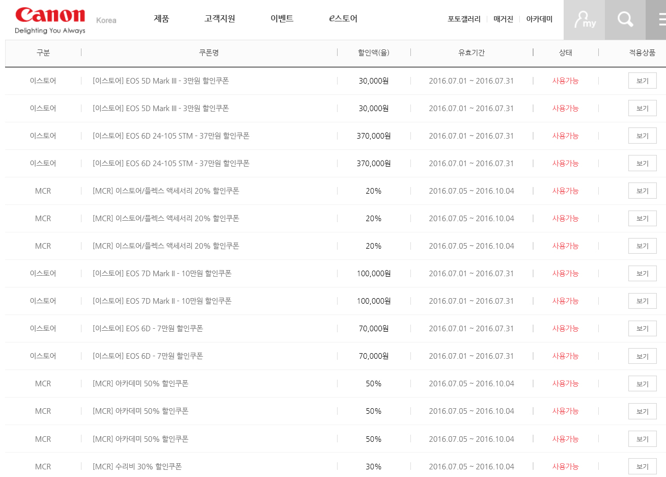 그리고 캐논 수리비 30% 할인 쿠폰도 팝니다.