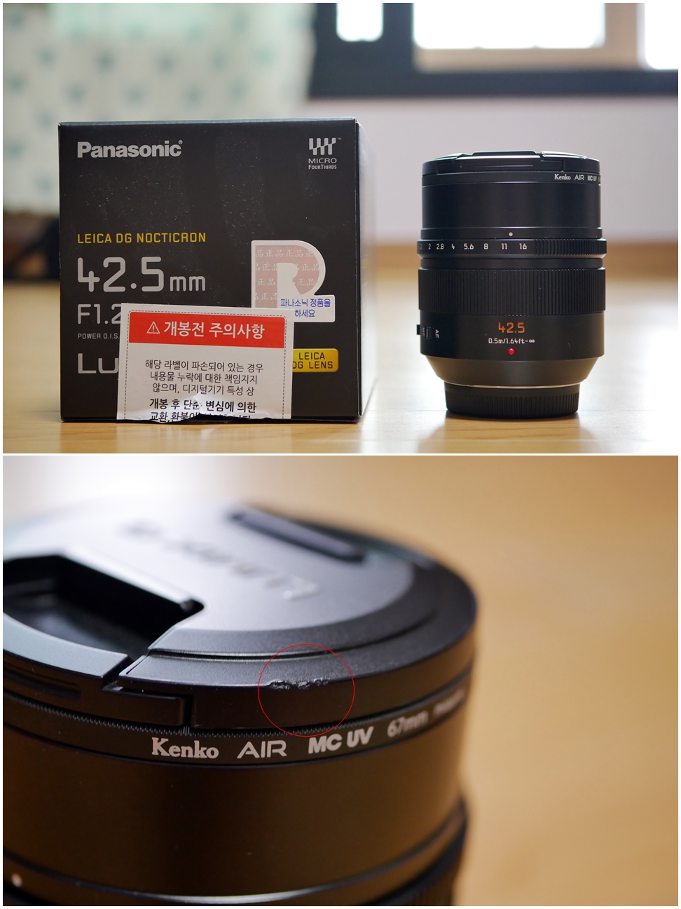 지역은 대구입니다. 제가 구매한지 한달 조금 넘은 것 같습니다. 제가 두 번째 주인입니다. 전 주인도 구매한지 한달 지났다고 했습니다. 켄코 필터 있습니다. 외관은 깨끗합니다. 다만 사진상 렌즈캡에 상처가 있네요.