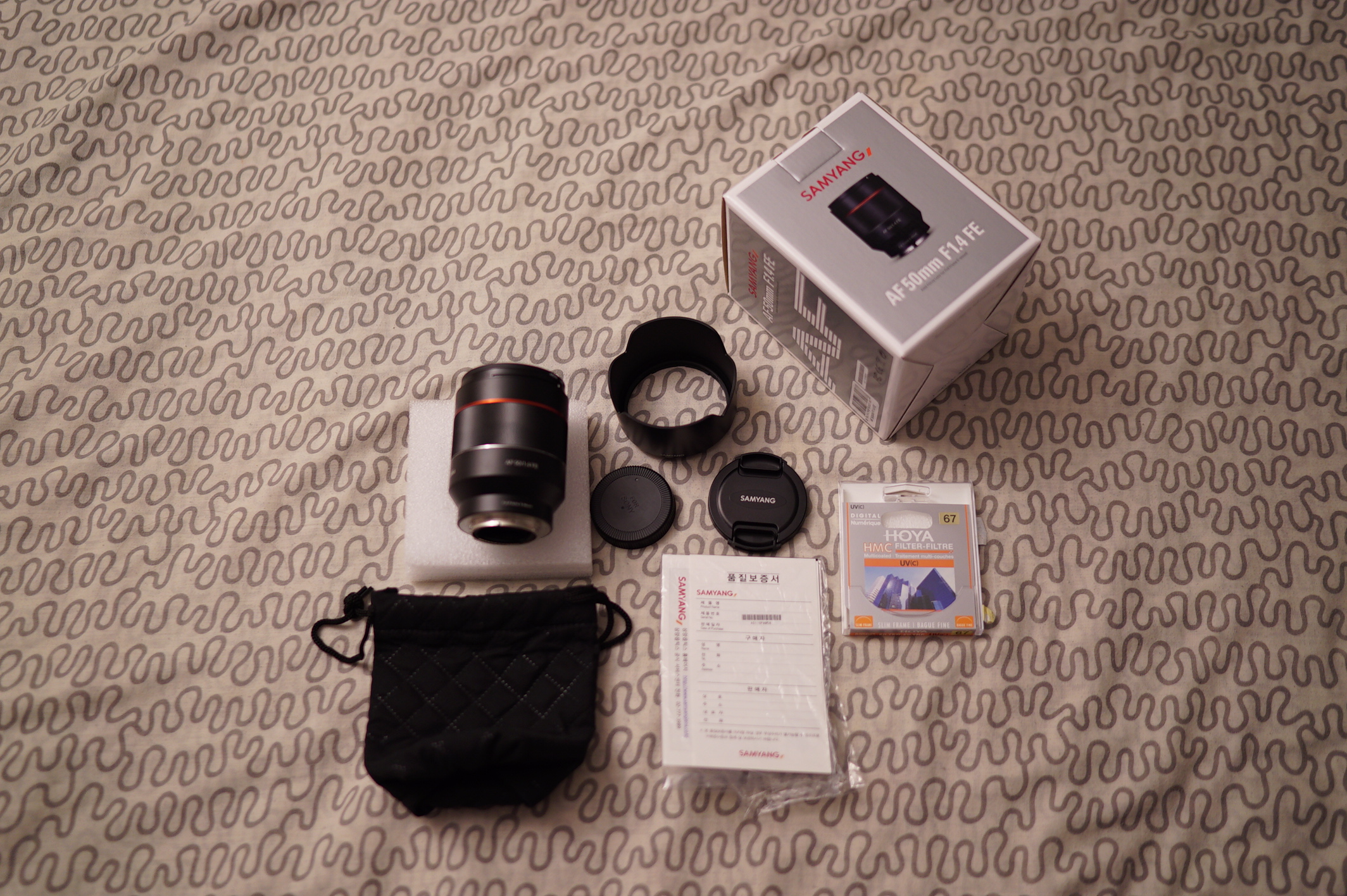 구성. 박스, 파우치, 설명서, 후드, 앞캡, 뒤캡, 67mm UV 필터.