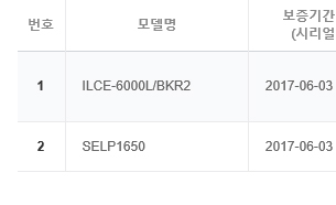 둘 다 올해 6월에 신품으로 구매했으며, 보증기간은 A6000은 17년 6월3일, E삼식이는 17년 6월1일까지 입니다.