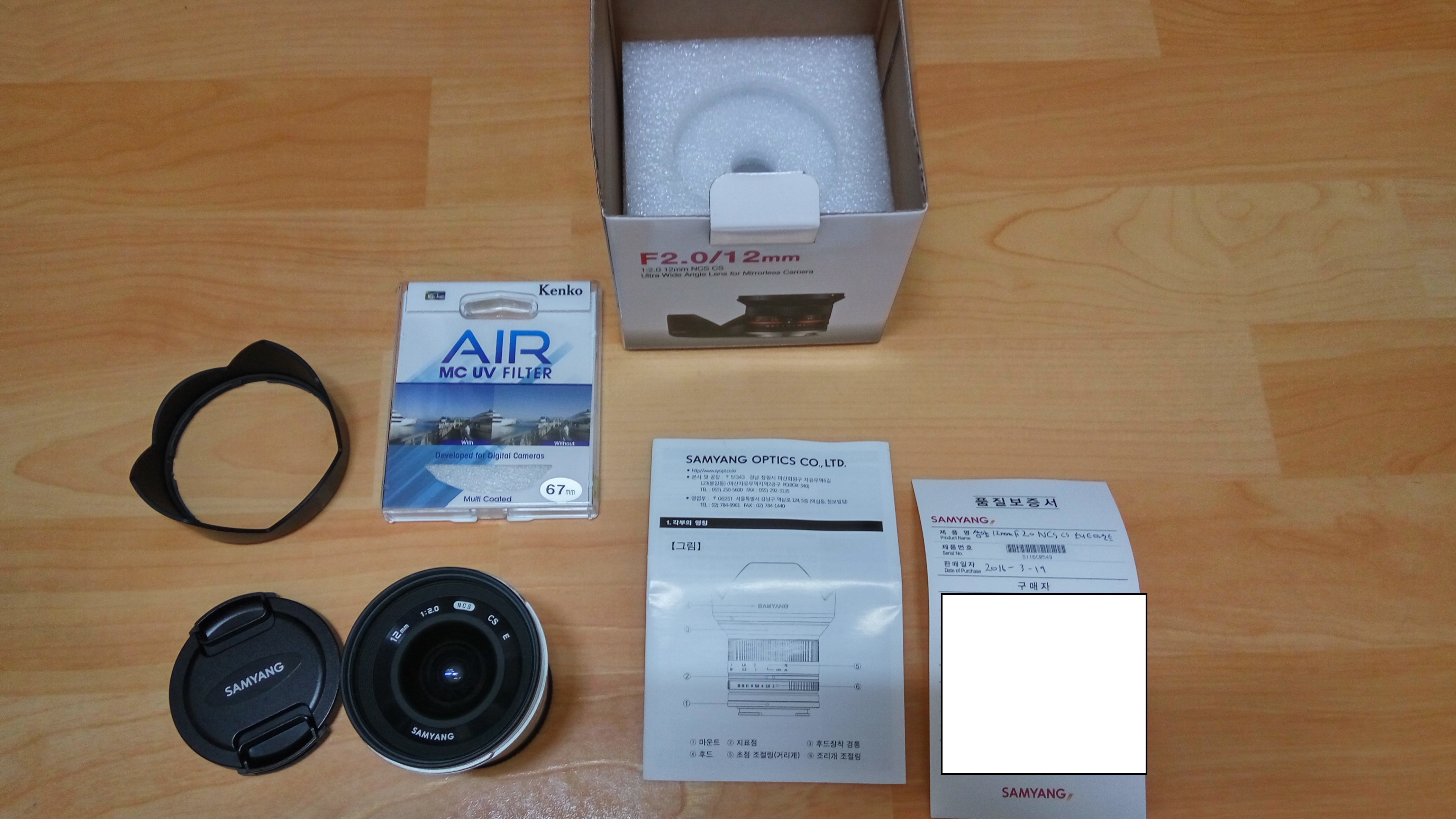 16년 3월에 구매했으며, 삼양옵틱스 홈페이지에 정품등록 되어 있습니다
