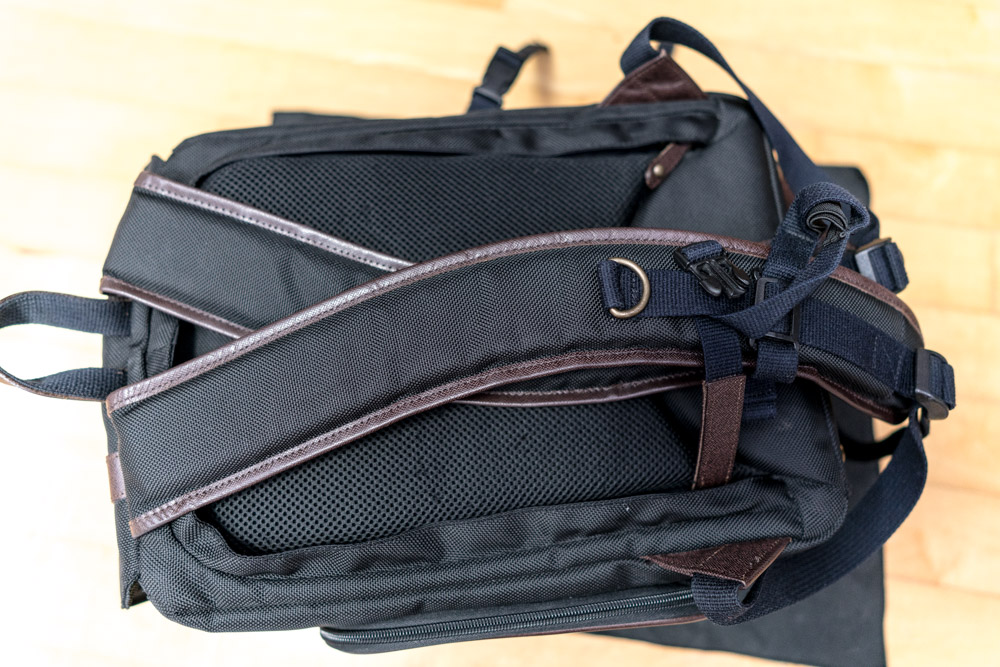 노트북 수납공간은 없고 정장이나 가벼운 도심생활에 매고다녀도 무난한 디자인입니다. 사이드 오픈으로 장비를 빠르게 꺼내고 넣기 좋습니다.