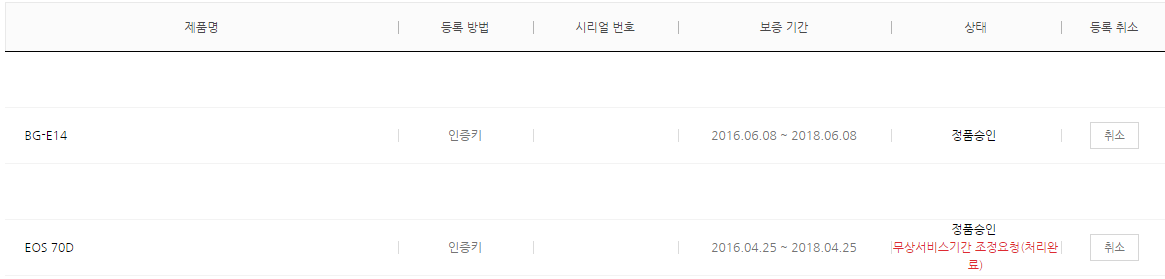 70D는 올해 4월달에 신품으로 구매했고, 배터리그립은 6월달에 신품으로 구입했습니다