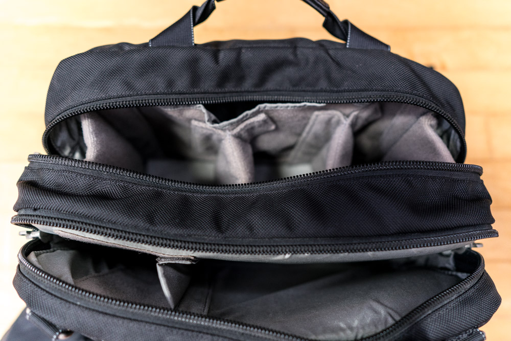 크기는 큰편이고 a7r과 25미리 렌즈장착하고 두대가 들어갈만큼 장비수납부는 넉넉합니다. 메모리카드지갑? 같은 것도 포함입니다.