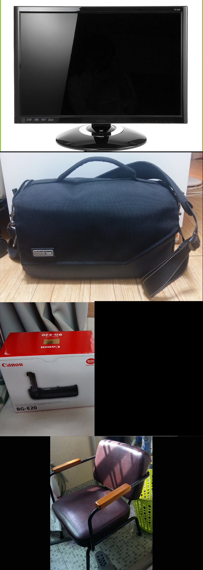 24인치모니터,BG-E20,씽크탱크포토 미러리스무버25I 팜