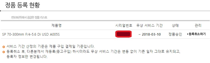 5년 정품 제품이라 내년까지 무상 as 가능합니다.