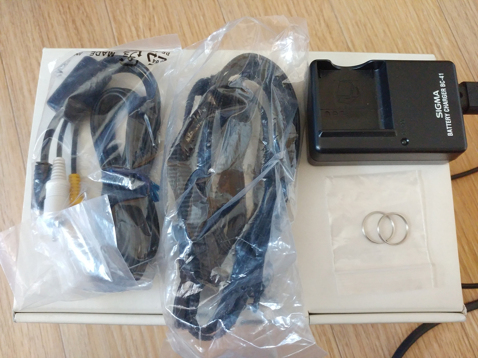 구성품: 본체, 배터리(1), 스트랩, av(?) 케이블, 충전기, 박스
