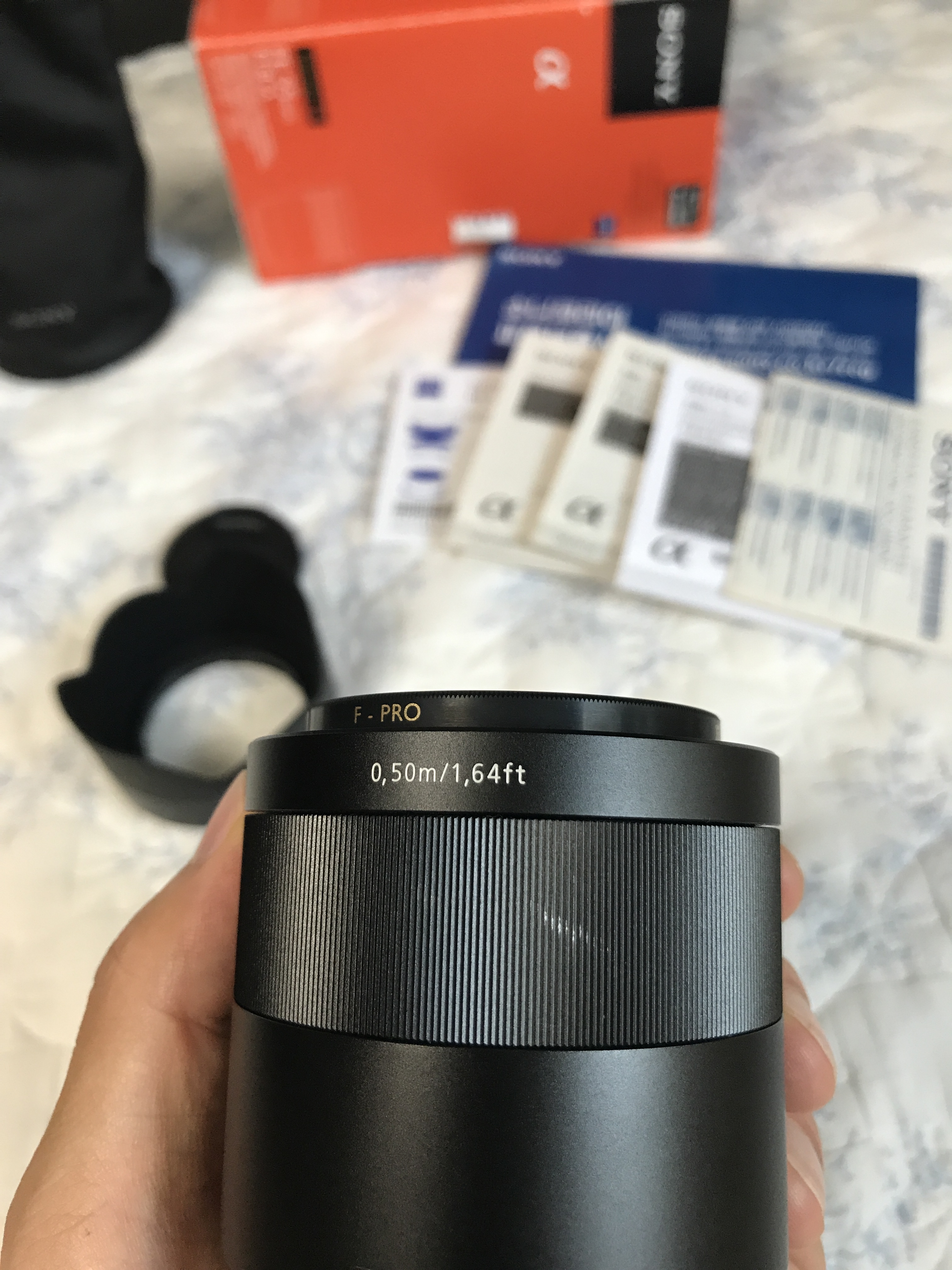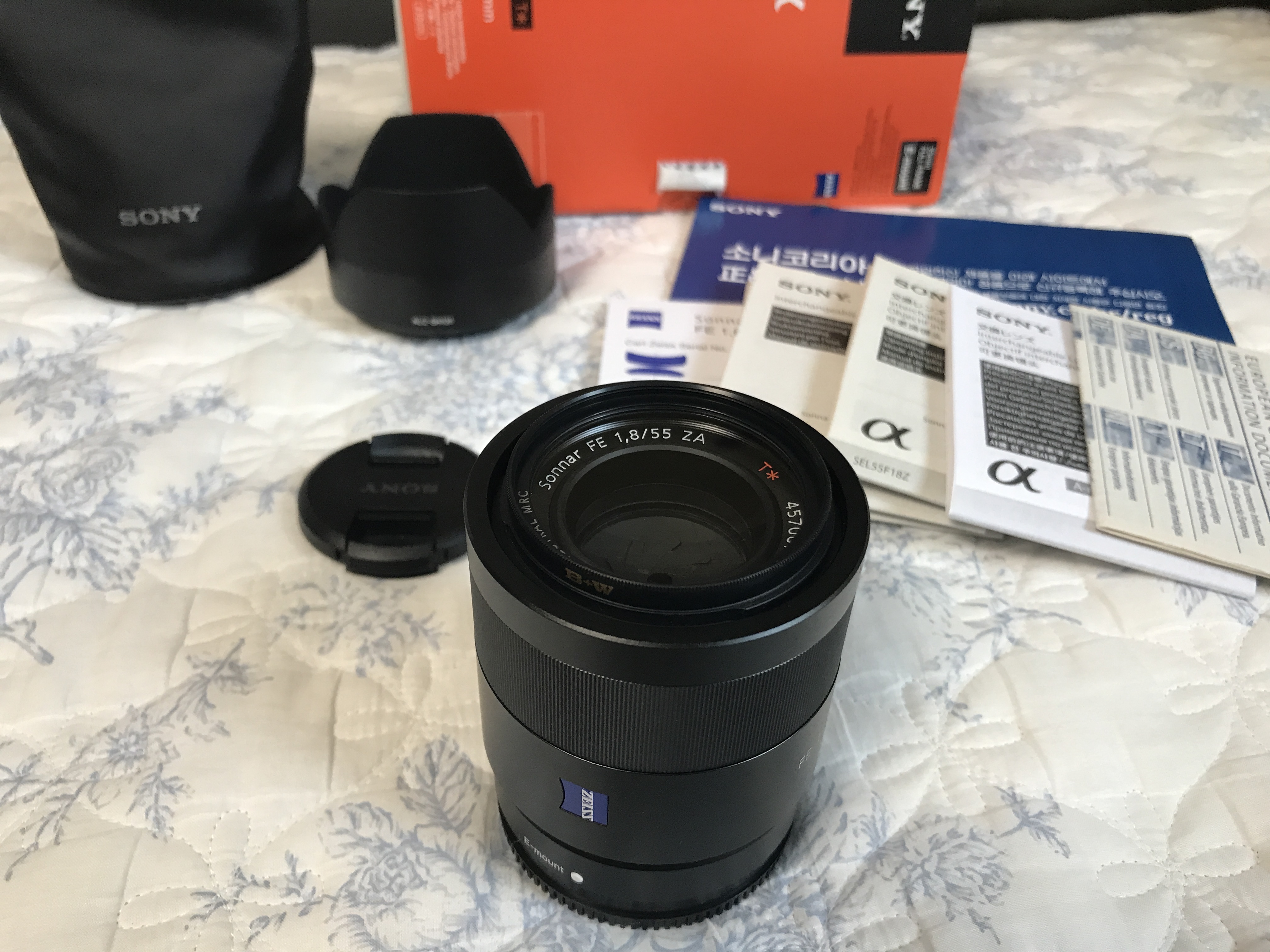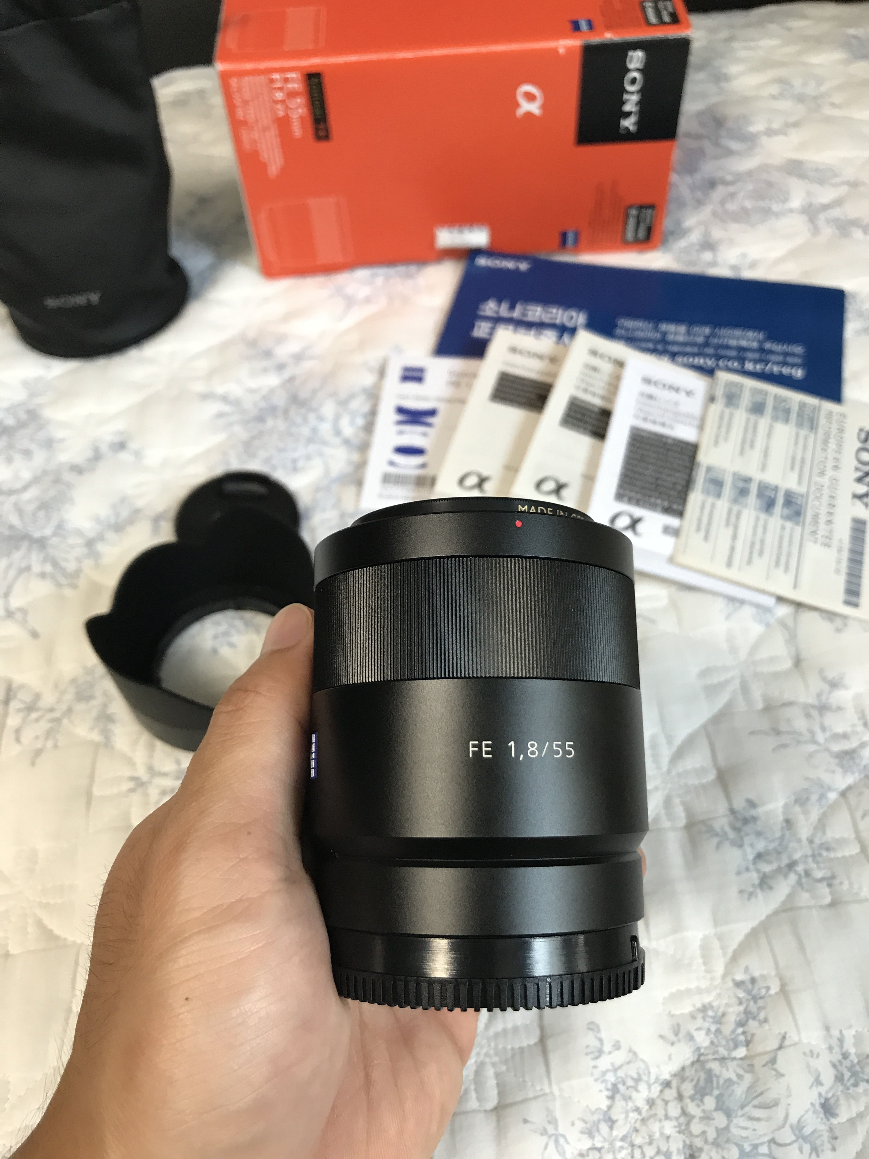 구성품은 렌즈 본체 포함 박스풀로 가지고 있으며 후드와 파우치는 미사용하였습니다