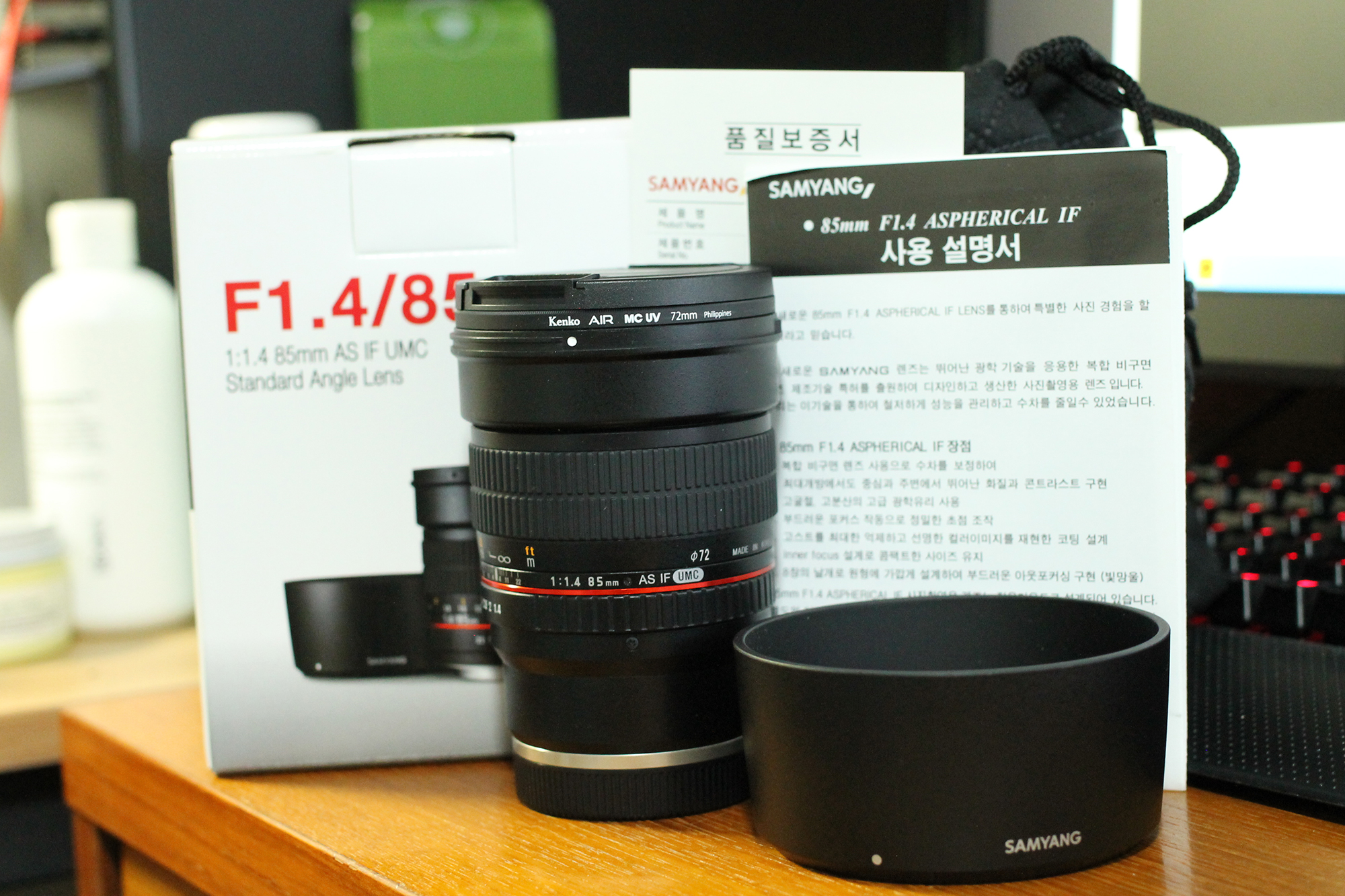 구성품은 박스풀(파우치, 보증서, 설명서, 앞뒤캡) 에 겐코필터 끼워서 드립니다.