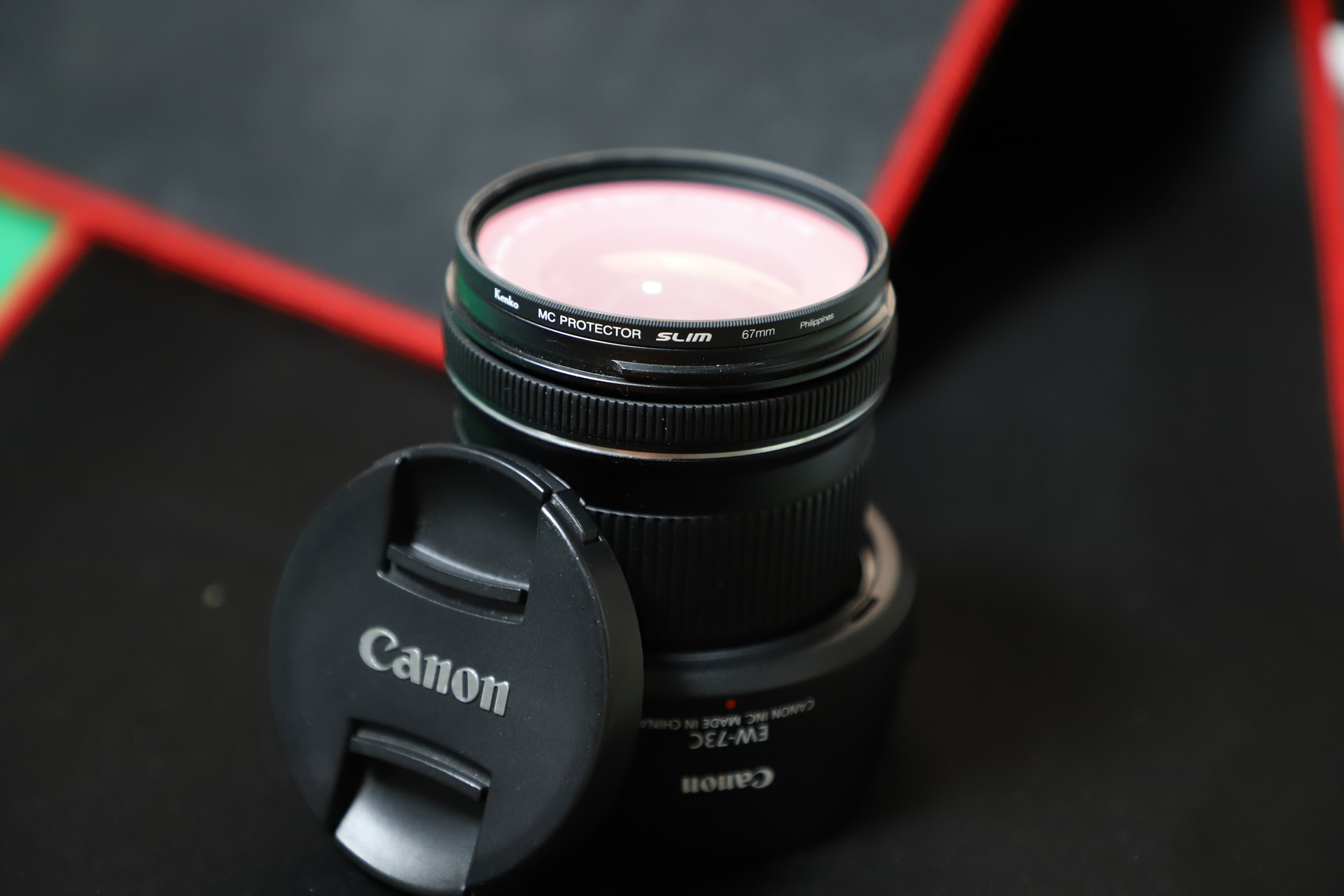 렌즈본체, kenko slim 필터, 정품후드 풀셋입니다.