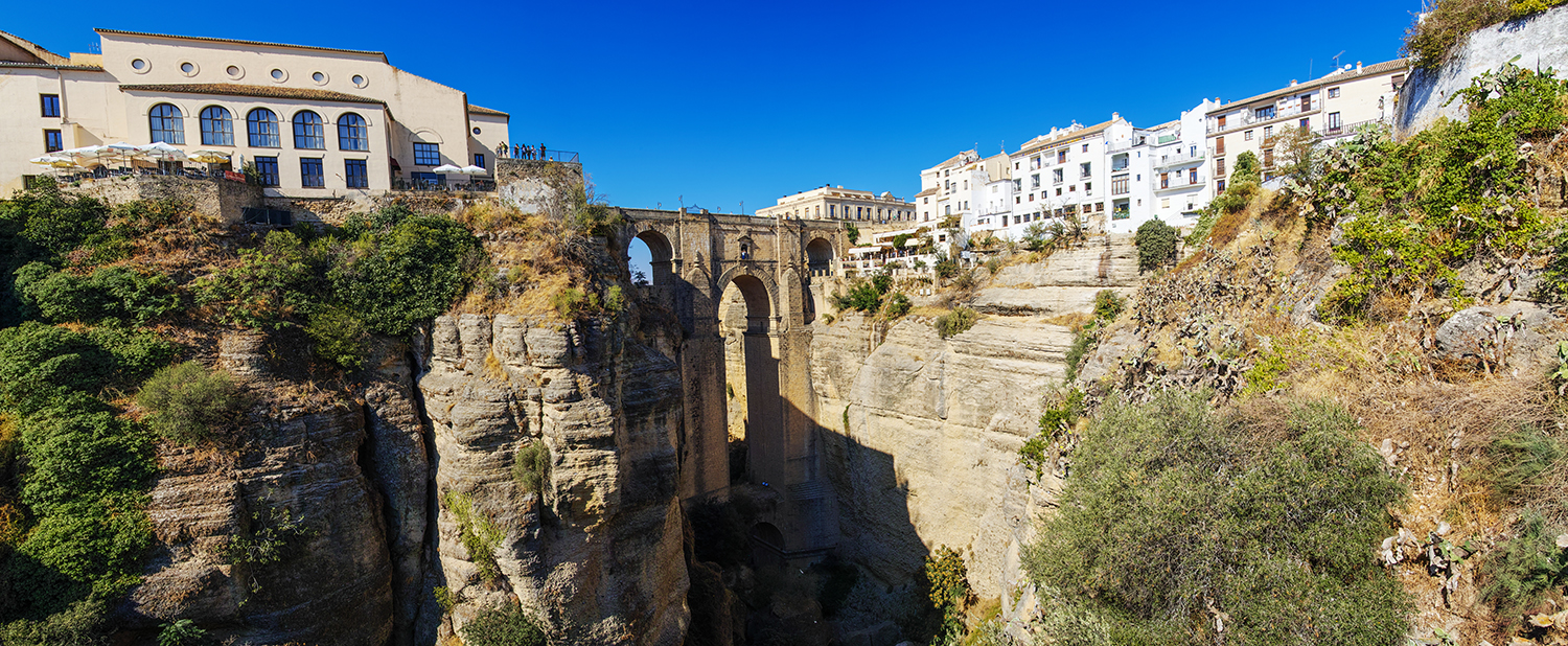 위키백과 내용 : 누에보 다리는 스페인 남부의 론다의 구시가지(La Ciudad)와 신시가지(Mercadillo)를 이어지고 있는 세 개의 다리 중 가장 나중에 만들어진 다리로, 과다레빈 강을 따라 형성된 120m 높이의 협곡을 가로지르고 있다.