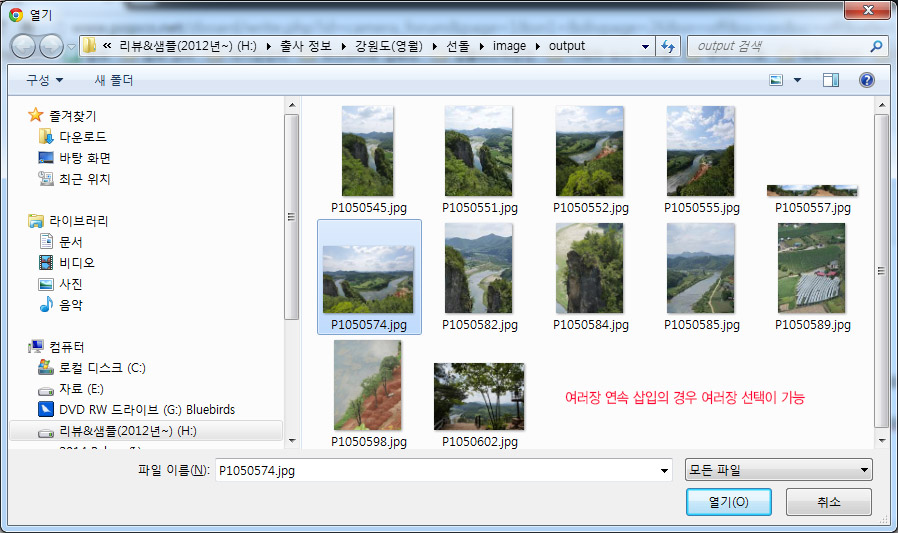 ►A-2. 첨부할 이미지를 선택하고 ‘열기’를 클릭합니다. 이때 사진을 여러 장 연속으로 삽입할 경우 복수 선택 첨부가 가능합니다.