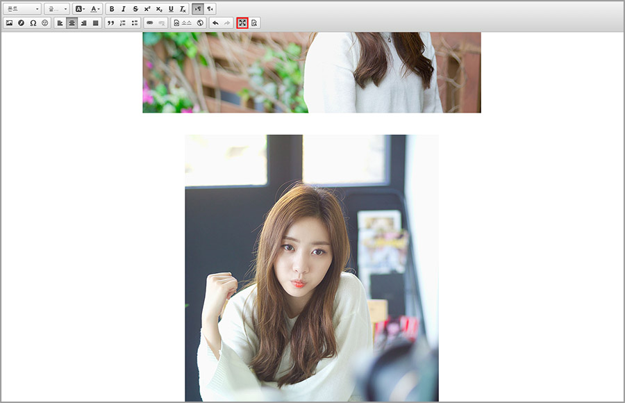 HTML을 어느 정도 이해하고 있는 고급 사용자의 경우 에디터 화면에서 '소스' 기능 버튼을 클릭하면