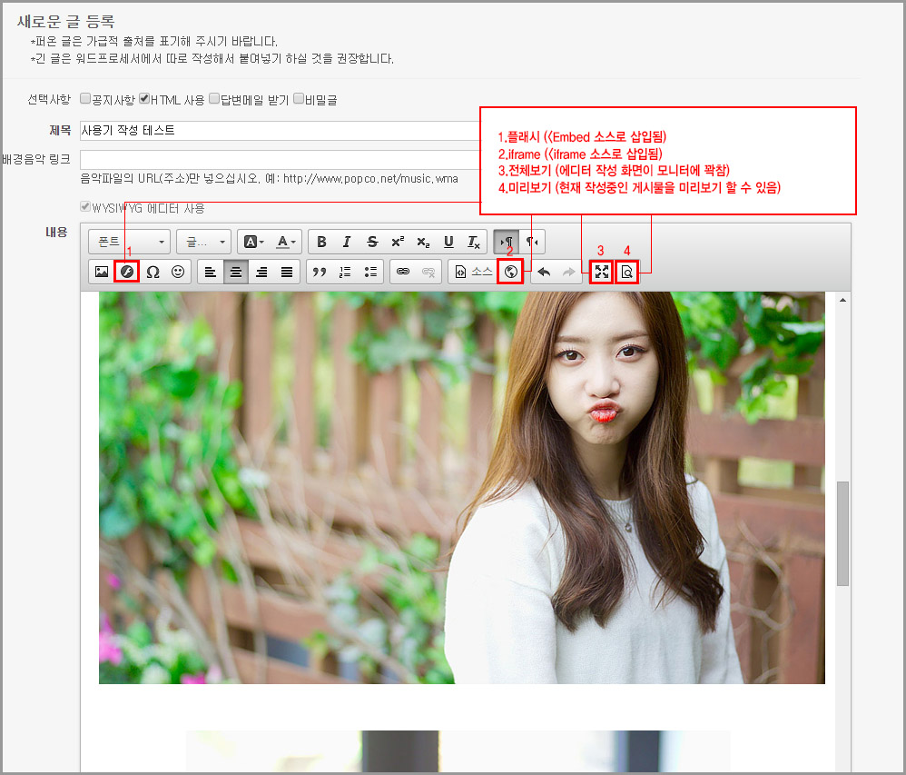 1.HTML 작성 방법과 에디터 화면을 여러번 전환을 반복하게 되면, 게시물 소스와 편집이 작성자 의도와는 다르게 구성 될 수 있기 때문에