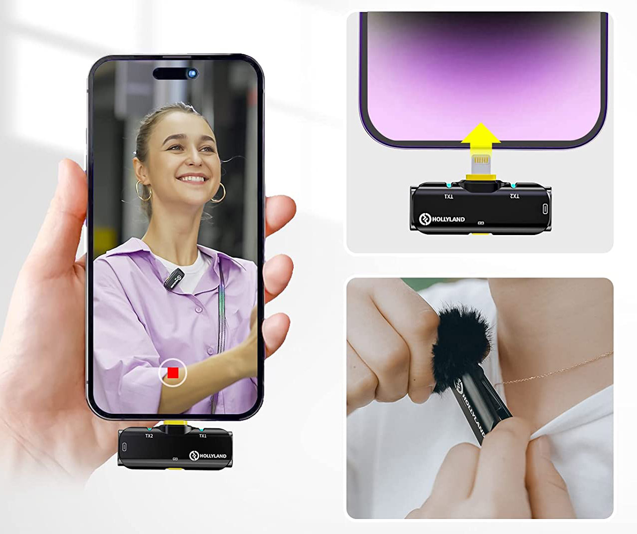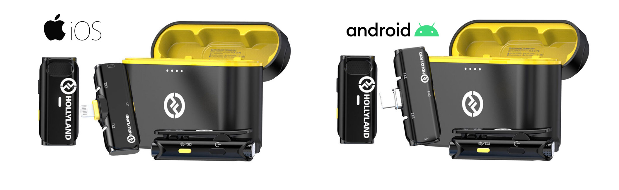 홀리랜드 무선 마이크 시스템 LARK C1은 iOS(Lightning) 와 Android(USB-C) 버전으로 제공된다. iOS 버전의 경우 고급 사운드 처리 기술과 RX의 Apple MFi 인증을 받아 Apple Lighting 인터페이스를 갖춘 iPhone 및 기타 iOS 장치에서 보다 쉽고 원활한 사용이 가능하다.