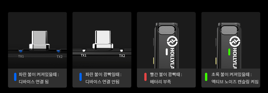 ※ Hollyland 공식 웹사이트를 통해 호환 가능한 모바일 기기와 호환 가능한 앱이 나열된 구성표를 확인해주세요.