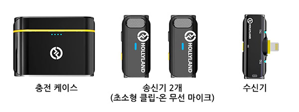 | 송신기 2개, 수신기, 충전 케이스로 구성