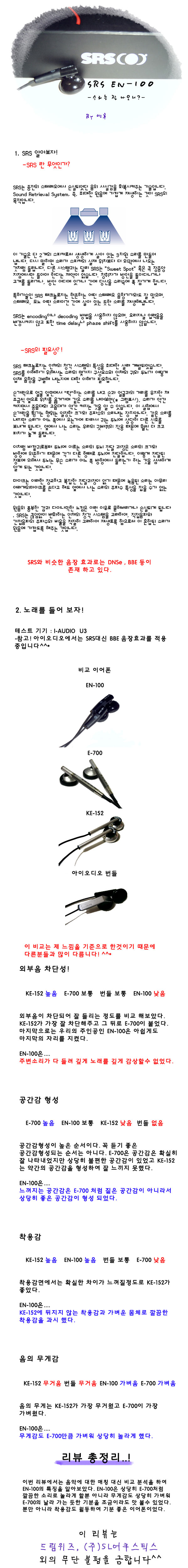 SRS 음향 전문회사여서 이어폰도 상당히 좋게 나올거라 예상했는데 ...