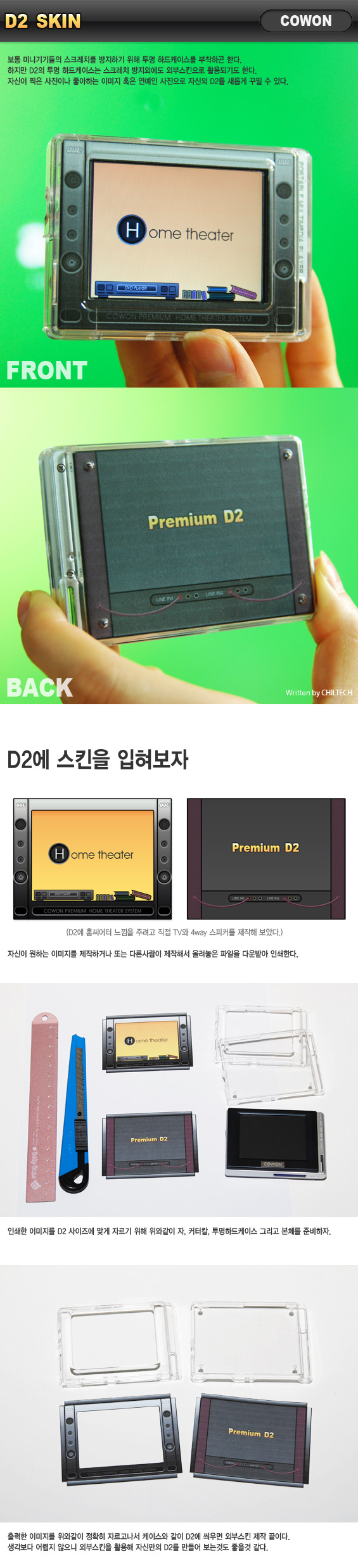 D2 외부스킨으로 홈씨어터를 꾸며봤습니다.나름대로 느낌내려고 노력했는데...그다지 멋있진 않은것 같네요..^^;스피커는 4way로 했구요...디자인 제가 직접했습니다.