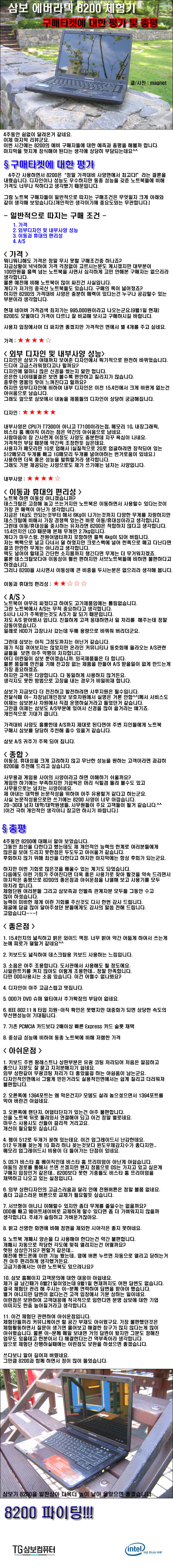 드디어 체험활동이 끝이 나려나 봅니다.정말 너무나 힘들었어요...아내눈치 보며 사용기 쓰느라 더 힘들었던듯 싶네요...그동안 사용기 잘 읽어 주셔서 감사합니다.