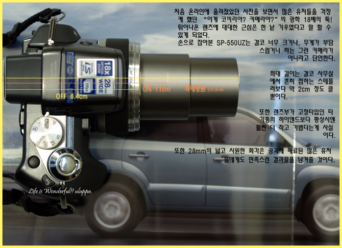 처음에는 광각과 고배율 줌에 끌렸었는데, 직접 보니 디자인과 인터페이스도 모두 괜찮더군요. 지금까지 FZ1을 써왔는데 훌쩍 커진 LCD 창도 감동이었습니다. (모 요샌 다 그렇게 나오는 것 같지만...)