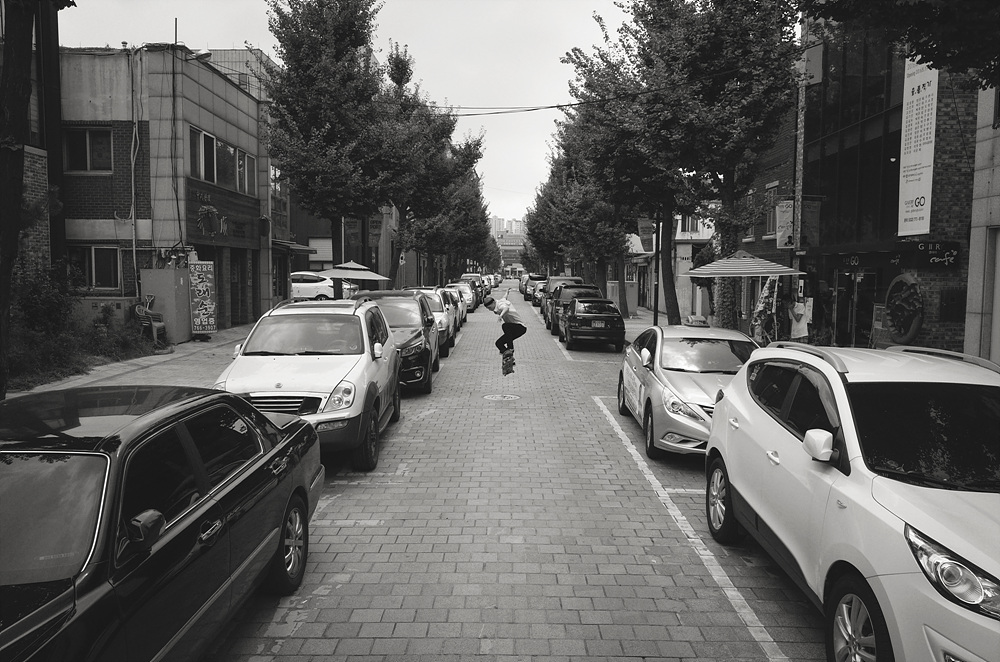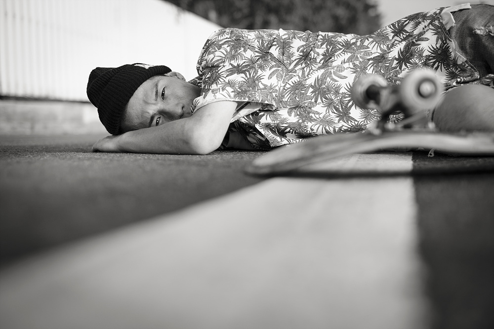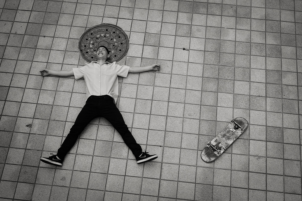 달궈진 아스팔트 위에서 엎드리고 누워달라는 부탁에 열정을 다해 촬영해준 스케이트 보더