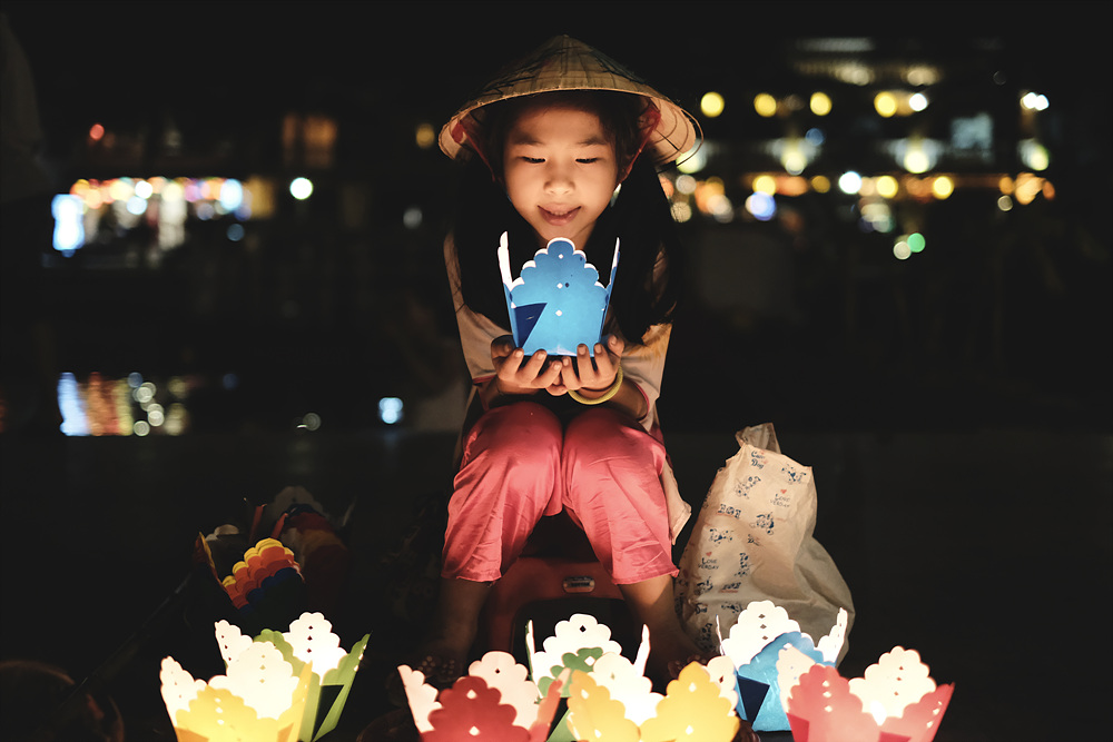 호이안의 밤을 더 아름답게 만들어준 등불을 파는 소녀들....