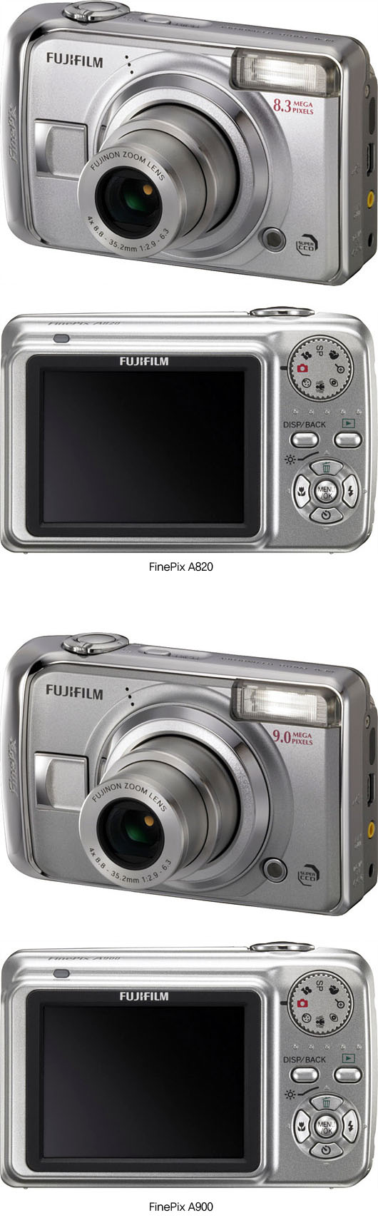 후지필름은 보급형 콤팩트 카메라 파인픽스 A820과 A900을 발표했다.